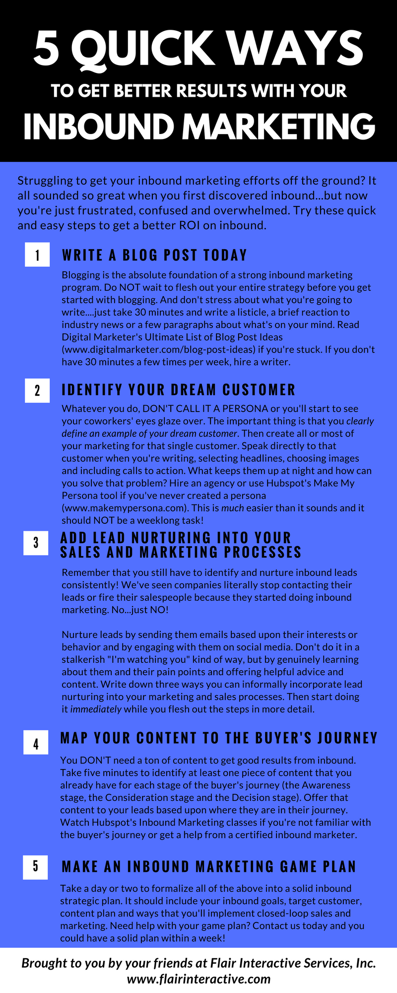 Our team of content strategists and inbound marketers has identified a list of the top five mistakes that we've seen inbound marketers make over and over and over again, and we're sharing it with you so you can save yourself a lot of time, money and headaches. Trust us when we say that taking shortcuts now will cost you more later.