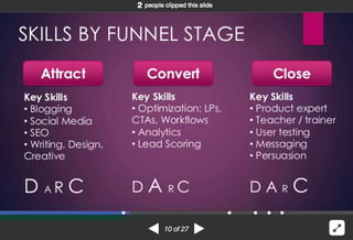 He elaborates on each of these, and then goes on to specify which of these skills is important at each stage of the marketing funnel: