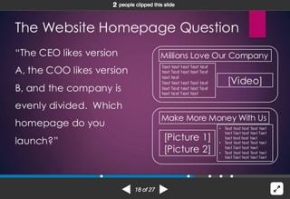 How did you answer that question? If you chose any of the above options, I'm sorry to say that you've failed this inbound marketing test. No self-respecting inbound marketer would choose a homepage design, layout or content based upon what anyone in the company prefers. The correct answer is that you need to determine what your USERS (meaning your prospects and site visitors--in other words, your user personas) prefer.