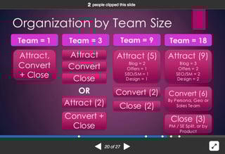 Volpe wraps things up by offering some great pointers about how you should distribute funnel tasks based upon the size of your marketing team:
