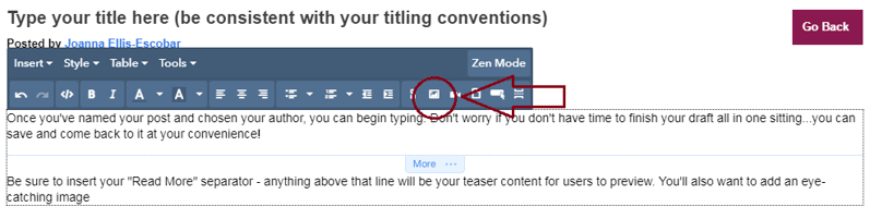 Remember to insert your image above the “Read more” separator so it will show up in the preview mode of your blog. And be sure that your Alt text is populated with descriptive, useful copy (Alt text is what optimizes your images).