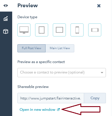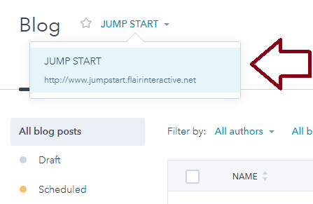 (Note, if you manage multiple blogs from your HubSpot account, be sure to toggle to the one you want to post from).