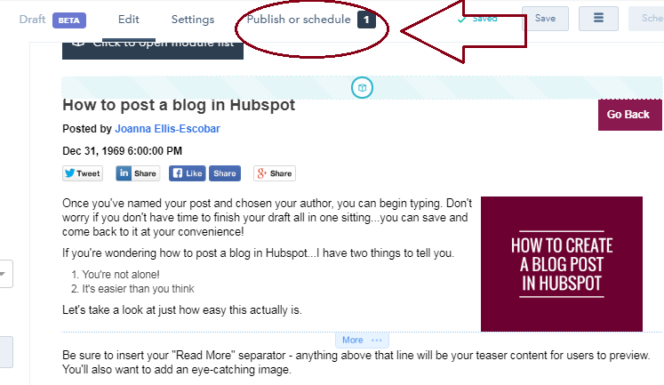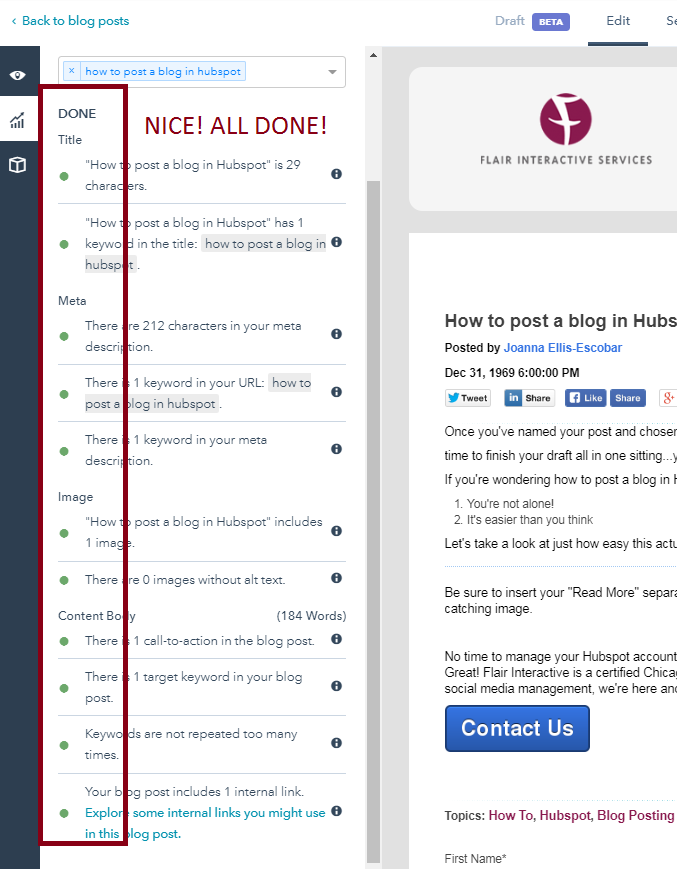 Well done! You have now created a blog post in HubSpot! Go you!