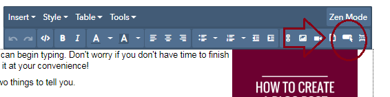 After you've written your blog, you want to have both a written call to action (CTA) (preferably one that links to a "contact us" page or other relevant page on your site) as well as a visual button. Insert a CTA button with the tool bar.