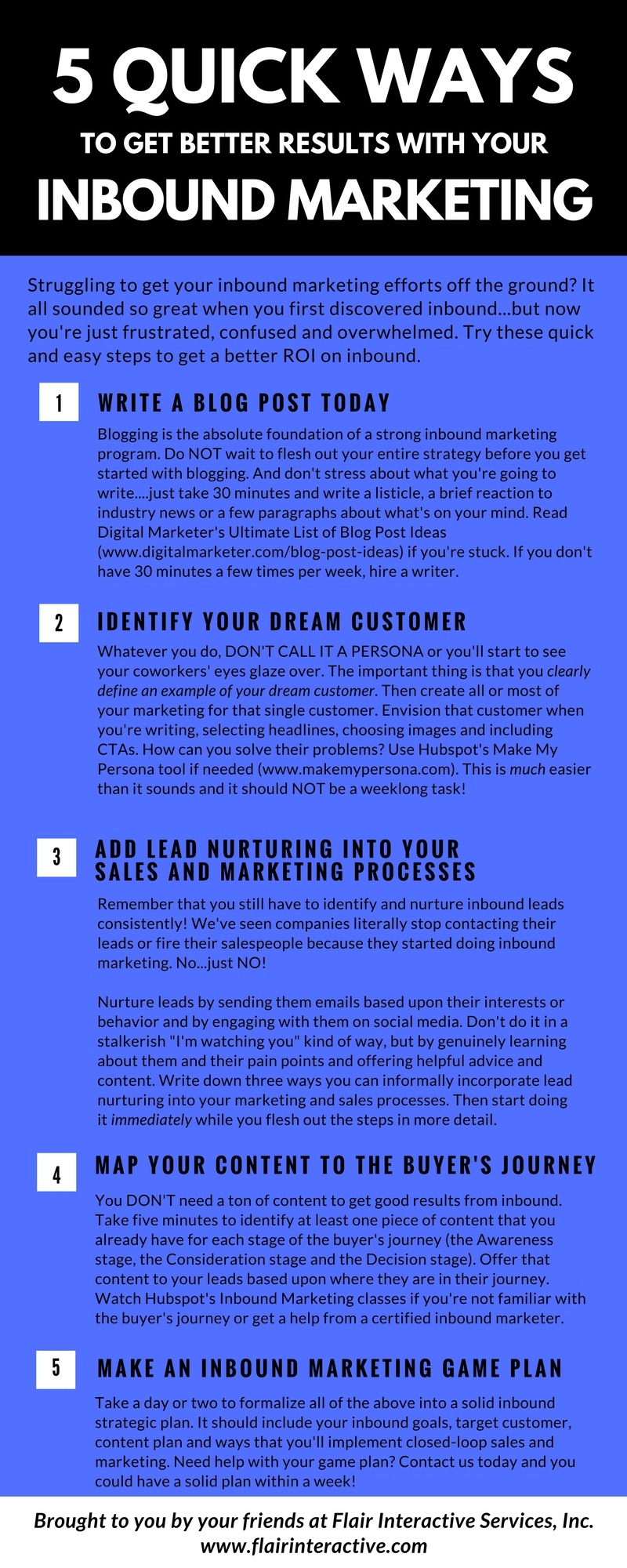 Still not getting the results you need from inbound marketing? Check out our latest infographic, which contains practical steps for things you can do NOW to see a better ROI!