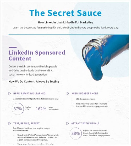LinkedIn released their “secret in the sauce” with this sought after infographic detailing their own approaches for increasing visibility and driving leads for the LinkedIn brand.