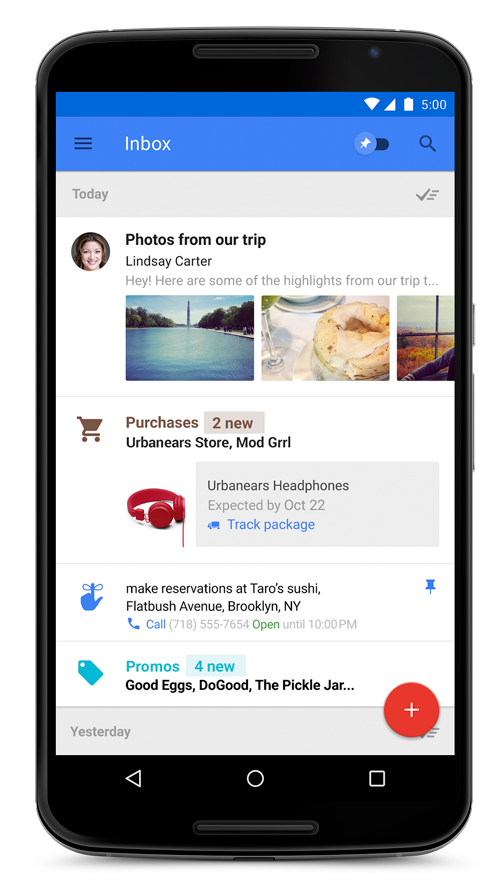 With Inbox, Google is bringing far more than just emails into people’s inboxes but also reminders, tasks, photos, purchases, flights and much more.